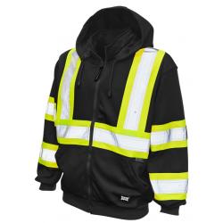 Stay warm and prepared on the job site with our durable and comfortable hoodie, ideal for layering. Crafted from 100% polyester anti-pill fleece with durable water-repellent finish, this hoodie offers both strength and comfort. It features 3M™ Scotchlite™ reflective material with a 2″ contrast backing for enhanced visibility, along with a full zip front closure and quick-release hood with adjustable drawcord for convenience. Complete with lower pouch pockets, rib-knit cuffs, this hoodie combines functionality with rugged style, perfect for active work environments.